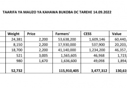 Taarifa ya Mauzo ya Kahawa Mtandaoni leo 31.08.2022